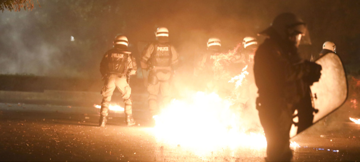 Επεισόδια με βόμβες μολότοφ κατά των ΜΑΤ σημειώθηκαν για ένα ακόμη βράδυ στο κέντρο της Αθήνας, με συνέπεια να τραυματιστεί ελαφρά ένας αστυνομικός.